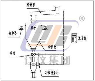 本儀表由(一次表)粉體沖量式流量變送器;(二次表)粉體沖量式流量儀;穩(wěn)流裝置(一般情況下,由生產(chǎn)廠指導(dǎo)用戶設(shè)計、制造)三部分組成(需流量調(diào)解時應(yīng)配流量調(diào)節(jié)器),系統(tǒng)配套見下圖