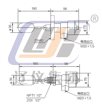 LS-B浮球液位開關是以浮球為感應元件,在容器的側部液位控制點的位置開設安裝口,儀表安裝時將浮球插入容器內(nèi),浮球隨著液位升、降,當浮球隨液位到控制點時,浮球連桿上磁塊帶動自保磁開關發(fā)生開或閉,發(fā)出報警信號,法蘭把液體和開關隔開開關借助磁鋼耦合傳達,因此可用在危險場所。