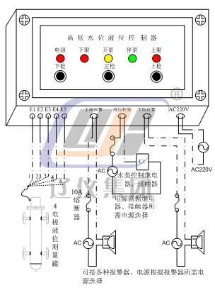 UDK-G3R-A1型水位控制器主要應(yīng)用于工業(yè)蒸汽鍋爐、熱水鍋爐、污水處理、浴池及樓房給排水等。具有應(yīng)用范圍廣、自控靈敏、抗干擾性強(qiáng)、體積小、價(jià)格低廉等特點(diǎn)。該控制器由水位檢測(cè)部分(電極、極筒)和水位控制部分組成,水位控制器是將導(dǎo)電介質(zhì)的液位信號(hào)轉(zhuǎn)換為四組開關(guān)信號(hào),上下限報(bào)警,LED顯示及開關(guān)輸出。